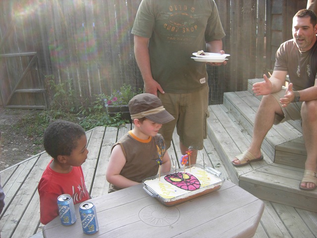 Yesterday was Kieran’s sixth birthday party.  The plans were to have a barbeque out at Little Red Park.  It was a beautiful day yesterday and there was not a single picnic table to be had out there.  So just before I left for the park, thinking that was where the festivities were happening, I got a call.  “Can we all come to your place?”  So there you go – always have the house in some reasonable semblance of order for these unexpected occurrences!  We have a nice yard and over the weekend I actually did a lot of weeding and planting and had gotten it in decent shape.